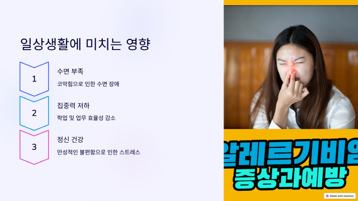 여러분도 알레르기 비염으로 고생하고 계시다면, 의사와 상담하여 자신에게 맞는 치료법을 찾고, 생활 환경을 개선하는 노력을 통해 증상을 완화할 수 있을 것입니다. 무엇보다 포기하지 않고 꾸준히 관리하는 것이 가장 중요합니다.
