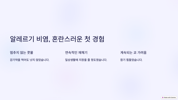 그때부터 시작된 알레르기 비염과의 싸움은 지금까지 계속되고 있지만, 이제는 제가 어떻게 관리해야 하는지 알게 되었습니다.