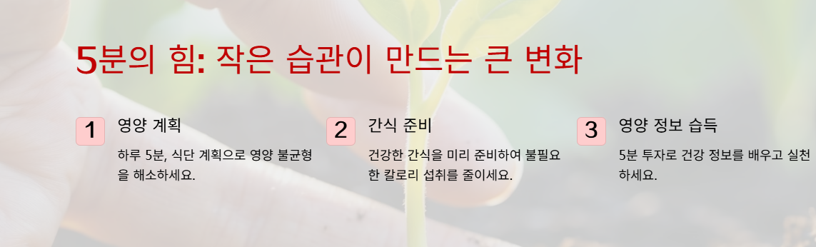 | 영양상식 | 5분 실천법 | 기대효과 |