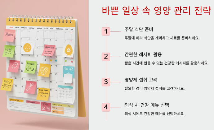 건강한 삶을 위한 가장 기본적인 요소 중 하나는 바로 올바른 영양 섭취예요. 하지만 현대인들은 바쁜 일상 속에서 영양에 신경 쓸 시간이 부족하다고 느끼는 경우가 많죠. 제가 영양사로 10년간 일하면서 가장 많이 들었던 말은 "시간이 없어서 건강하게 먹기 힘들어요"입니다.
