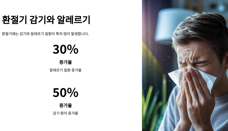 환절기에 가장 많이 발생하는 질병은 단연 감기입니다. 일교차가 크면 우리 몸의 면역력이 저하되고, 이때 바이러스가 침투하기 쉬워지거든요. 특히 꽃샘추위 시기에는 기온 변화에 따른 체온 조절 실패로 감기에 더 취약해집니다.