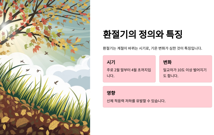 환절기란 말 그대로 계절이 바뀌는 시기를 의미하죠. 특히 겨울에서 봄으로 넘어가는 2월 말부터 4월 초까지가 대표적인 환절기 기간인데요. 이 시기에는 일교차가 10도 이상 벌어지는 경우가 많아 우리 몸이 적응하기 어려운 환경이 조성됩니다.