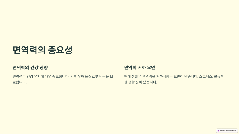 현대인들은 스트레스, 환경오염, 불규칙한 생활습관으로 면역력이 떨어지기 쉽습니다. 면역력은 우리 몸을 질병으로부터 보호하는 방어 시스템인데요. 특히 계절 변화가 심한 요즘, 면역력 관리는 더욱 중요해졌어요.