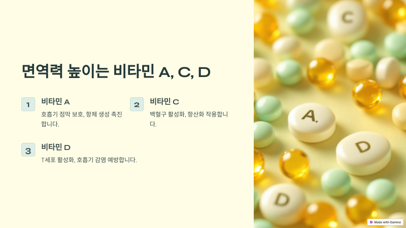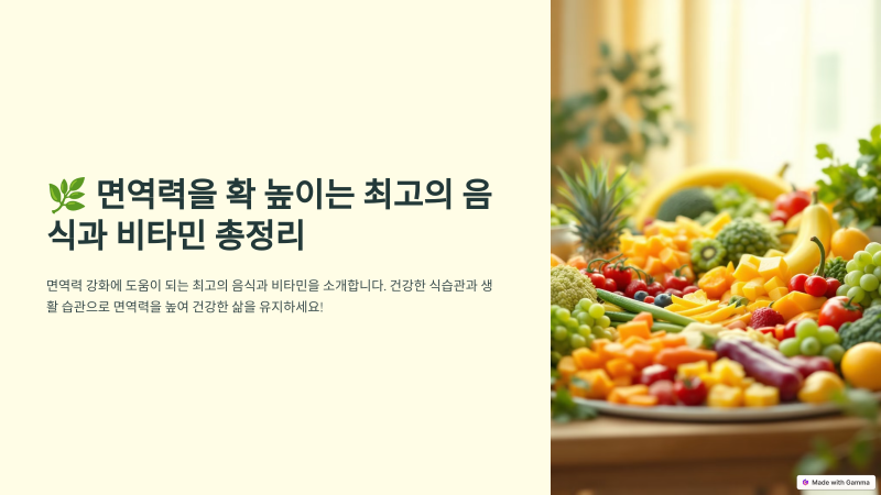 메타 디스크립션: 면역력을 높이는 최고의 슈퍼푸드와 필수 비타민을 알아보세요. 김치, 마늘부터 비타민 D, 아연까지 일상에서 쉽게 실천할 수 있는 면역력 강화 식단 가이드!